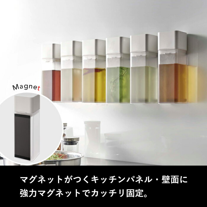 マグネットで着脱簡単、まるでおしゃれなお店のディスプレイのような収納ができる便利な調味料容器シリーズ。