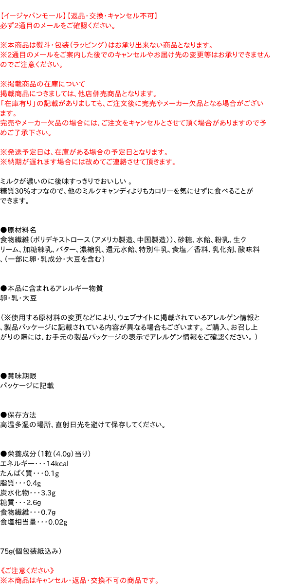 [関連キーワード:お菓子 飴 あめ アメ キャンディー ミルクキャンディ]【イージャパンショッピングモール】内のみのお買い物は、送料一律でどれだけ買っても同梱する事が出来ます。
