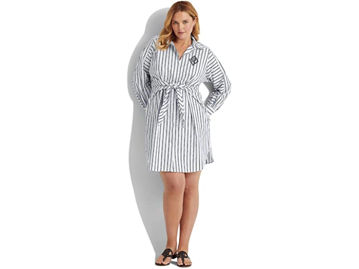 (取寄) ローレン ラルフローレン プラス サイズ ストライプド コットン ブロード シャツドレス LAUREN Ralph Lauren Plus Size Striped Cotton Broadcloth Shirtdress Blue/White 詳しく見る