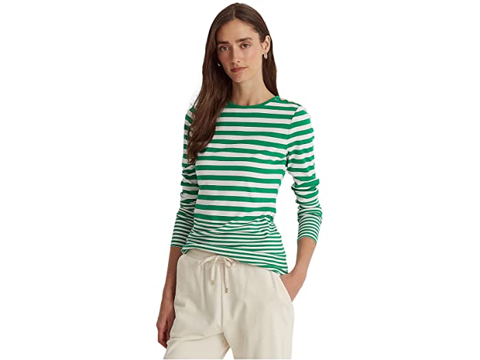 (取寄) ローレン ラルフローレン レディース ストライプド スナップトリム ロングスリーブ トップ LAUREN Ralph Lauren women Striped Snap-Trim Long-Sleeve Top White/Jardin Green 詳しく見る
