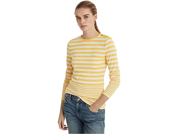 (取寄) ローレン ラルフローレン レディース ストライプド スナップトリム ロングスリーブ トップ LAUREN Ralph Lauren women Striped Snap-Trim Long-Sleeve Top White/Riviera Sun 詳しく見る