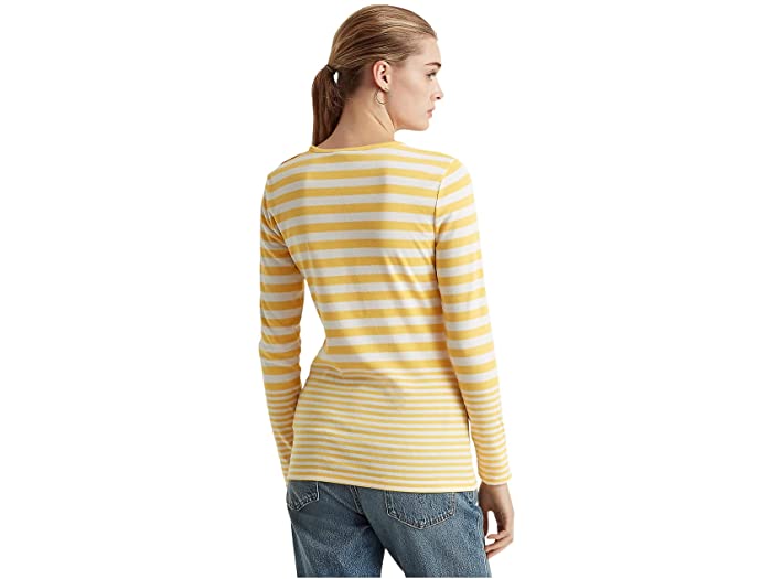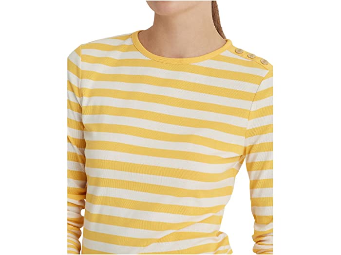 (取寄) ローレン ラルフローレン レディース ストライプド スナップトリム ロングスリーブ トップ LAUREN Ralph Lauren women Striped Snap-Trim Long-Sleeve Top White/Riviera Sun