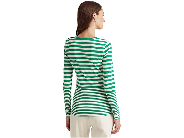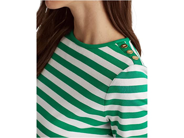 (取寄) ローレン ラルフローレン レディース ストライプド スナップトリム ロングスリーブ トップ LAUREN Ralph Lauren women Striped Snap-Trim Long-Sleeve Top White/Jardin Green