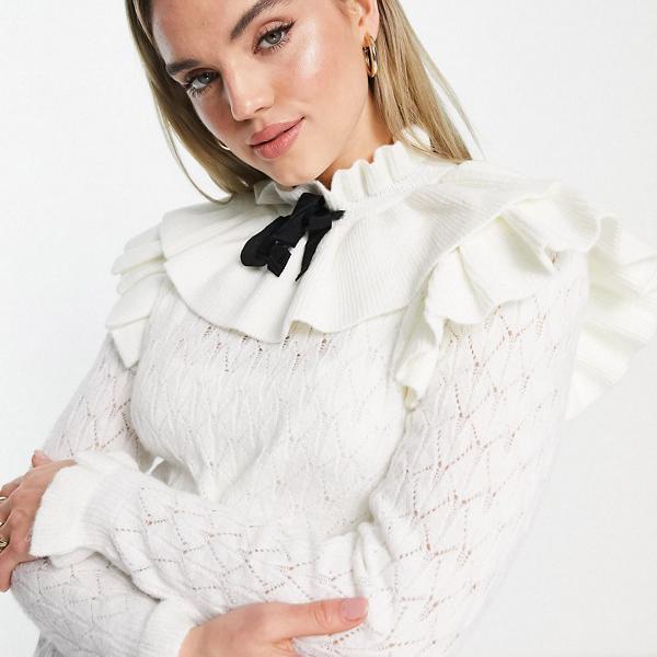 Y.A.S Y.A.Sフリルネックジャンパーとネクタイクリーム トップス レディース 女性 インポートブランド 小さいサイズから大きいサイズまで